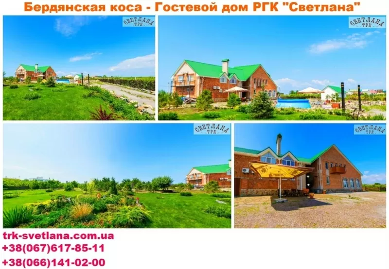 снять жилье в Бердянске на Бердянской косе дом возле моря забронировать онлайн через сайт официальная интернет страница аренда без посредников домик в частном секторе Ресторанно гостиничный комплекс Светлана Дальняя коса арендовать недорого дешево возле моря вблизи от берега рядом пляж Азовское море побережье отдых всей семьей с детьми школьник годовалый ребенок хорошие условия проживания отзывы об отдыхе посмотреть мнение отдыхающих туристов на Азове увидеть актуальные цены прайс лист цены в Бердянске на аренду жилья гостиница отель на море запросить цену через online написать письмо с запросом варианты номеров уточнить по телефону позвонить хозяину владельцу частное объявление посмотреть видео ролик пансионата на бердянской косе дальней эко дом в номере есть кондиционер не жарко прохладно тень на территори есть парковка стоянка для автомобиля машины как доехать в Бердянск миную посты летние цены на проживание условия жилья посуточно на длительный срок сколько стоит жилье в мае июне июле августе какова стоимость работают ли пансионаты на Азовском море забронировать арендовать у частного лица частника сайт бесплатных объявлений Азов цены оценка отдыха на отлично положительная доброжелательные хозяева вид на море есть озеро пляж песчаный чистый бесплатный экономный отдых отдохнуть дешево с маленькими детками оголовок косы в номере есть вай фай хороший прием сигнала мобильной связи набрать дозвонится к собственнику туалет душевая кабина в номере внутри есть кровать удобная шкаф для вещей тумбочка прикроватная рядом развлечения для деток аквапарк купаться дельфинарий дельфины увидеть природа оздоровление лечение комфорт люкс номера стандарт все условия